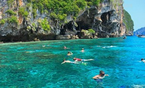 Im klimatisierten Minibus fahren Sie morgens von Ihrem Hotel zum Royal Phuket Marina Hafen. Mit dem Schnellboot geht es dann zu den Phi Phi Inseln, wo Sie auf der Bamboo Insel schwimmen, schnorcheln und entspannen werden. Geniessen Sie die traumhaften Buchten mit kristallklarem Wasser und farbenprächtiger Unterwasserwelt. Das Mittagessen geniessen Sie dann auf der Phi Phi Don Insel und fahren danach zum Affenstrand mit einem Besuch bei den Wikinger Höhlen für einen Fotostopp. Weiter geht es dann zu den Phi Phi Lay Inseln mit einem Aufenthalt bei Pi Leh Cove zum schwimmen und schnorcheln. Um ca. 16.00 Uhr fahren Sie zum Schnorcheln, Schwimmen und Relaxen zu den wunderschönen puderweissen Sandstränden der Rang Yai Insel