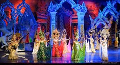Lassen Sie sich am Abend von einmaligen Buehnenbildern und schillernden, farbenfrohen und atemberaubenden Kostuemen mit Gesang und Tanz verzaubern.